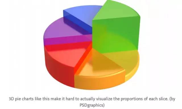 像这样的3D饼图使得用户很难搞清楚每个切片实际可视化的比例。(由PSDgraphics提供)